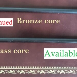 From the inventor of PegHeds, this hybrid endpin has a carbon fiber exterior with a brass core, and features his silicon carbide super-sharp tip. Total endpin length 24.5″. In case you were expecting other varieties, there used to be multiple bronze formulas and one less-popular copper. Chuck decided to work on other projects and discontinued making endpins. Brass is the only variety available.