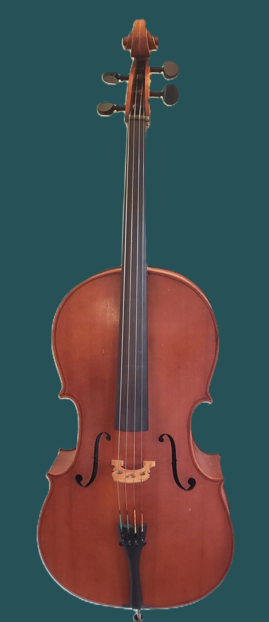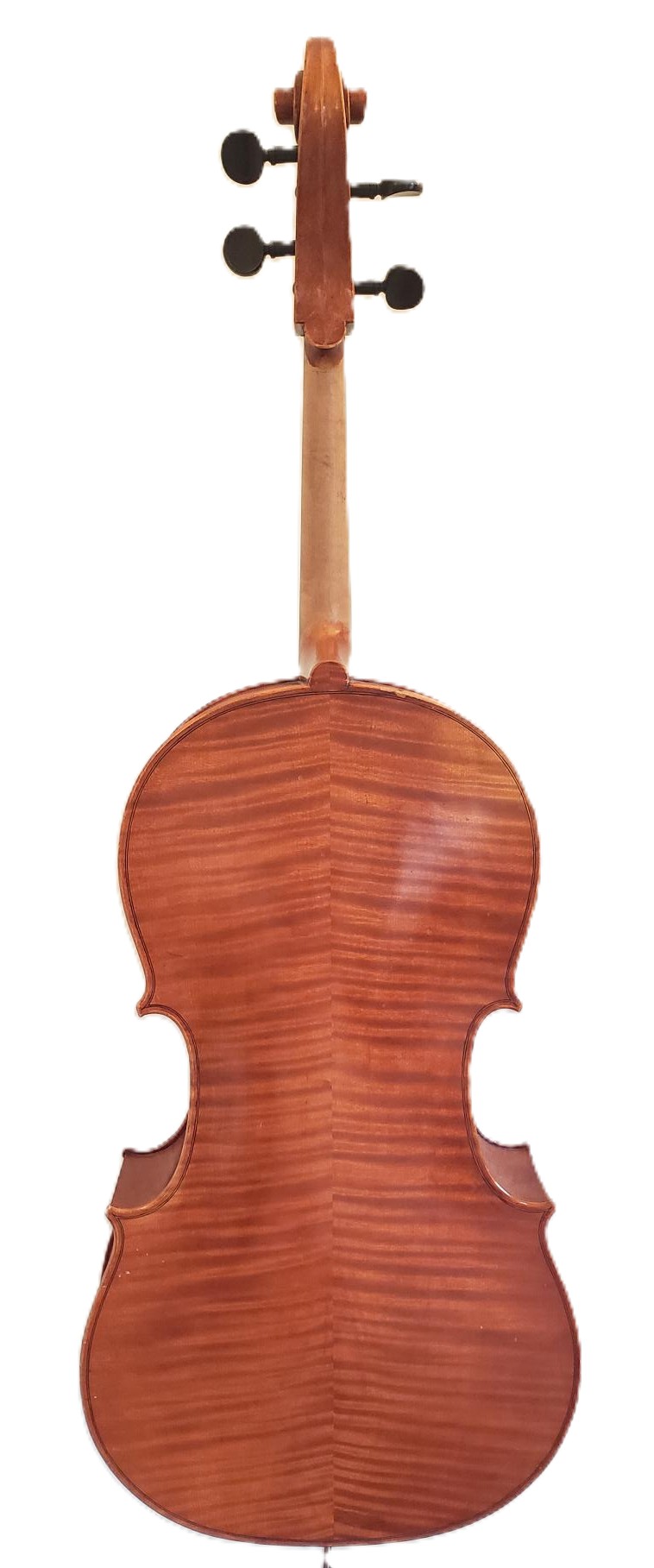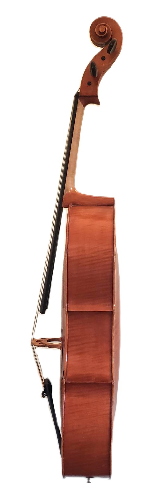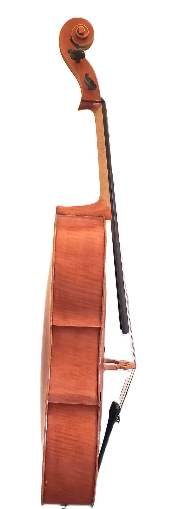We first sold this cello in 2001, and after being with families in NY and SC, it’s looking for a forever home.  I say that because we stopped working with the small cellos, and are not going to able to trade it up to the next size.  It may be a wonderful addition to a studio or school with a constant supply of 1/2 sized cellists.  PegHeds have just been installed for effortless and stable tuning.  Original endpin fitting was replaced with a composite by NHM, and removable endpin is 21.5″  Wittner tailpiece.  Not all 1/2 size cellos have the same dimensions and contours.  Oh, this specific model is still made by Eastman but not in small fractional sizes anymore.