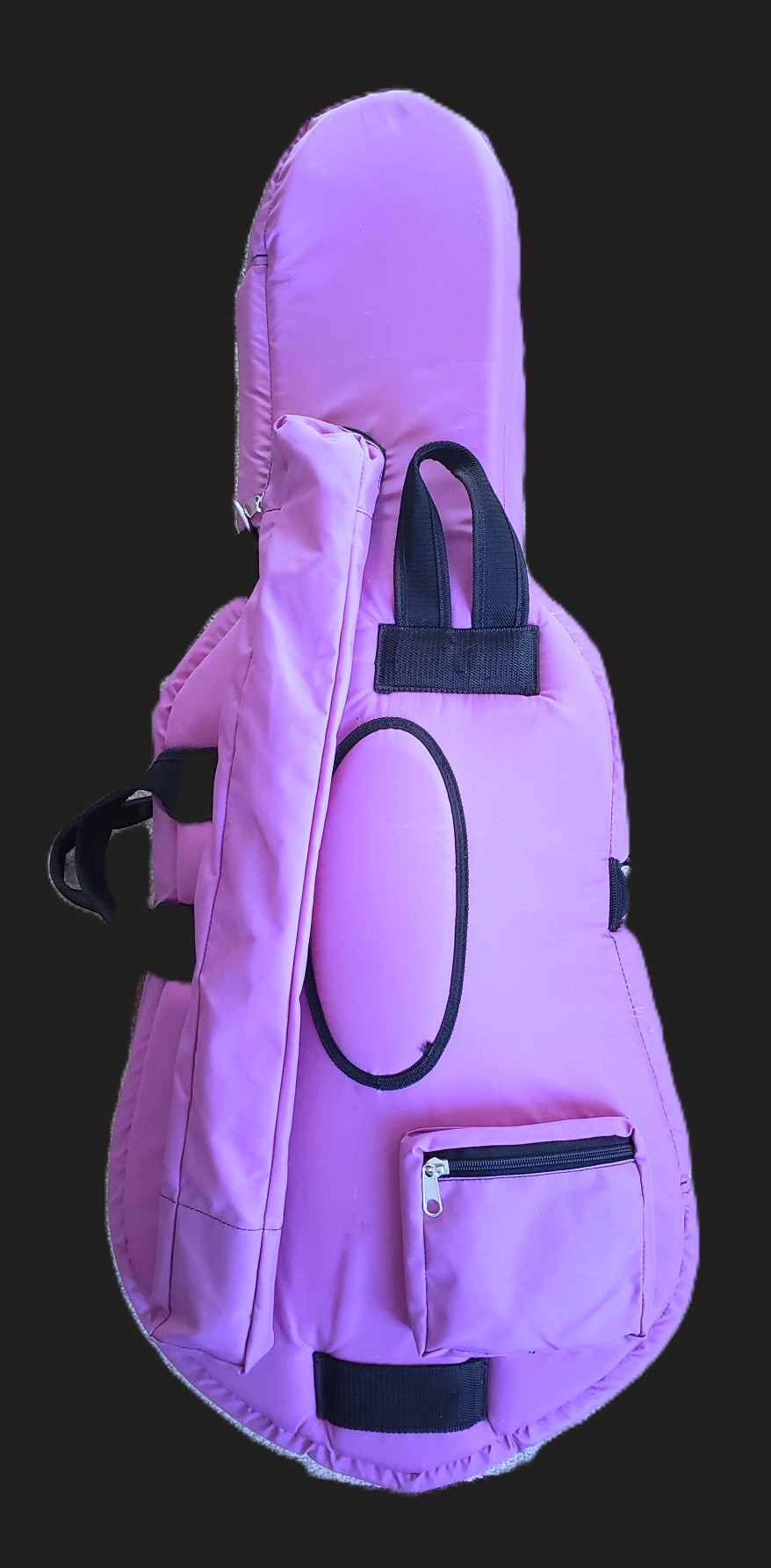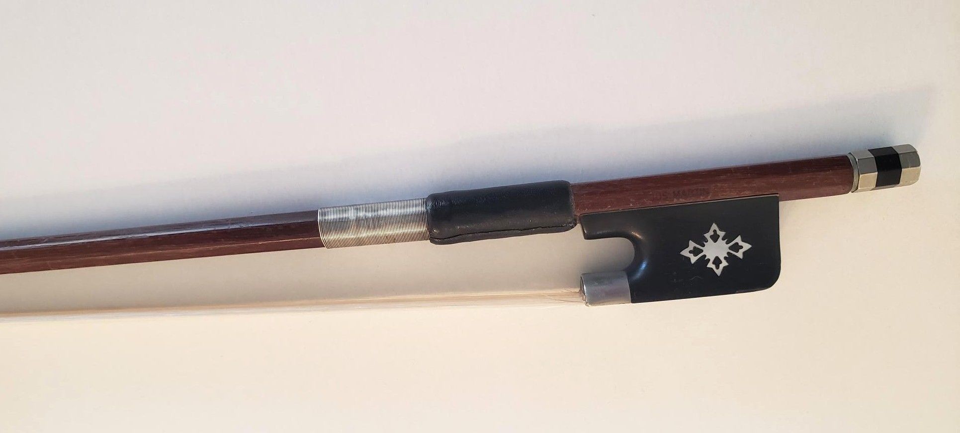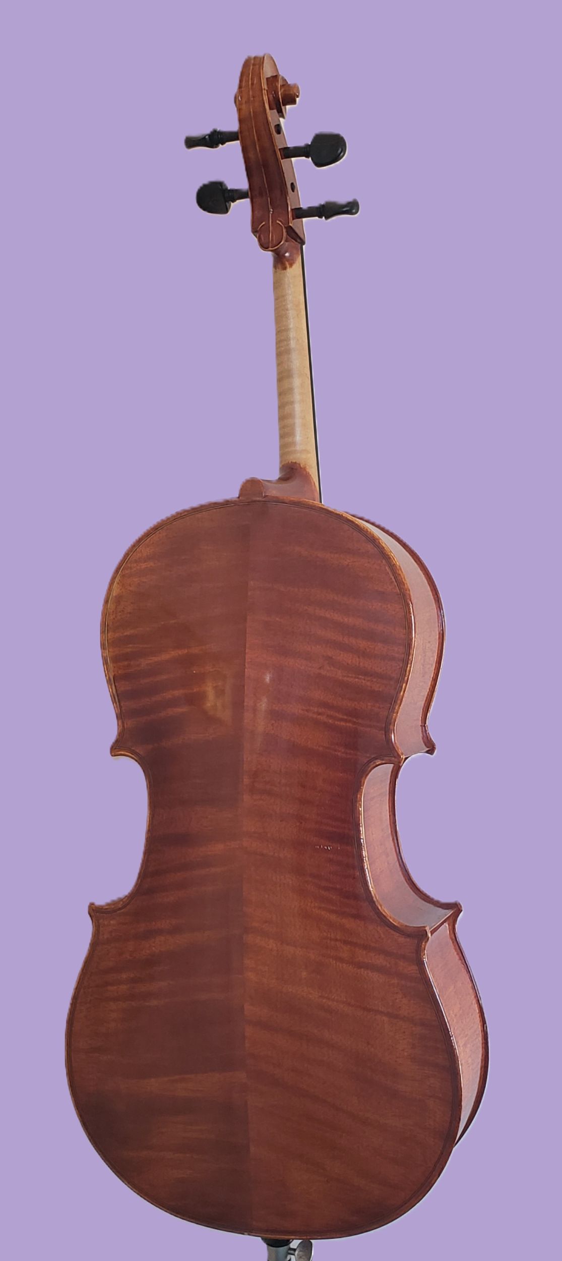 This 1/4 size Andreas Eastman cello was made in 2003 and has been in the hands of people who took very good care of it.  It is paired with an octagonal German bow stamped Jos. Martin, made of brazilwood with a full-lined ebony frog, weight ~ 66 grams.  Keeping in mind dimensions for the same “size” cello can vary with each maker and style, I can tell you this is a smaller 1/4 than some others.  The back length is 59 cm (12 1/4″), the upper bouts are 27 cm (10 5/8″), the lower bouts are 34 cm (13 5/8″) and the playable string length is 53.5 cm (21 1/8″).  It’s important to note that a narrow cello will be easier for some kids with shorter legs to get comfortable at than a wider-bottom cello .  A purple Bobelock bag completes the outfit.